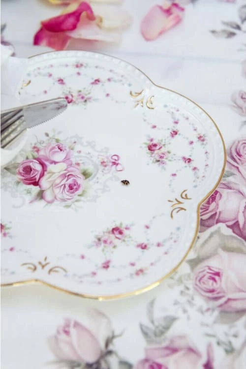 Coup de coeur pour cette vaisselle shabby chic finement décorée à la fois vintage et romantique.